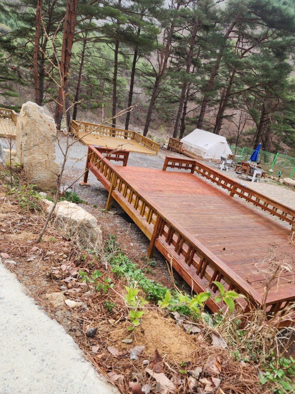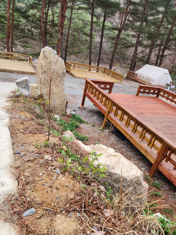 캠핑장에 칠자화 네개 묘목과 앵두나무 한개.포포나무 한개 묘목을 내려오는 언덕길에 심었습니다.