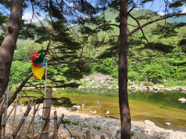 캠장오신 고객분들이 강에 내려가서 여유로운 시간을 보내고 있네요^